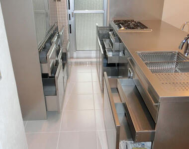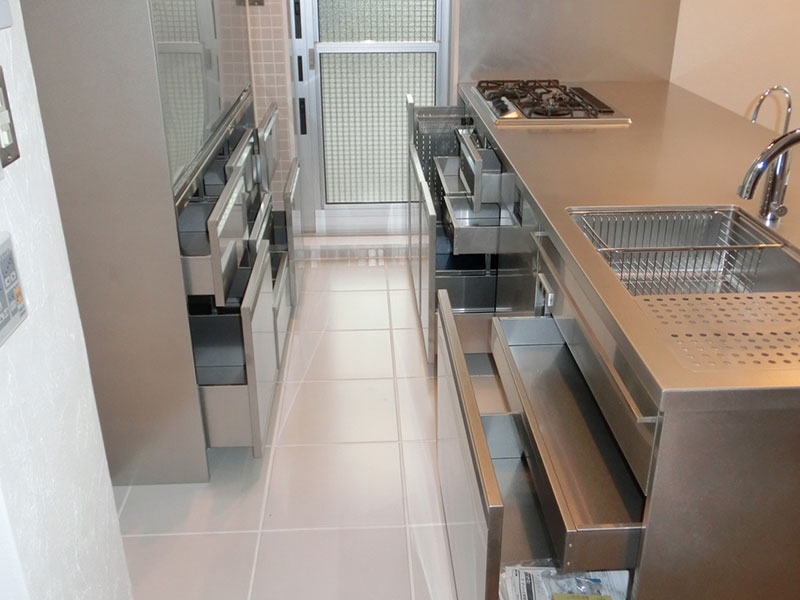 もちろん、オーダーメイドのオリジナルキッチンですから、シンクの大きさ、ワークトップの広さ、コンロの火力(電気・IH)、オーブン、食洗機の性能、機種など、さまざまなご希望を盛り込み、納得のいくキッチンを製作させていただきます。