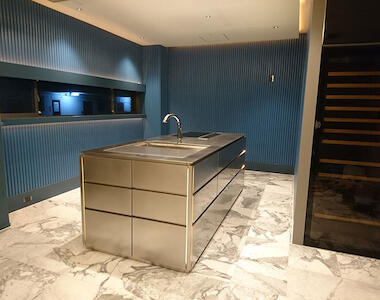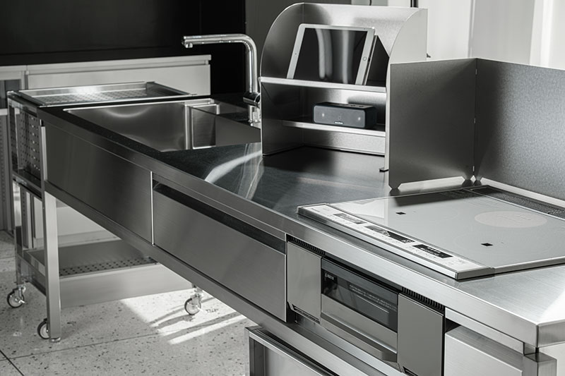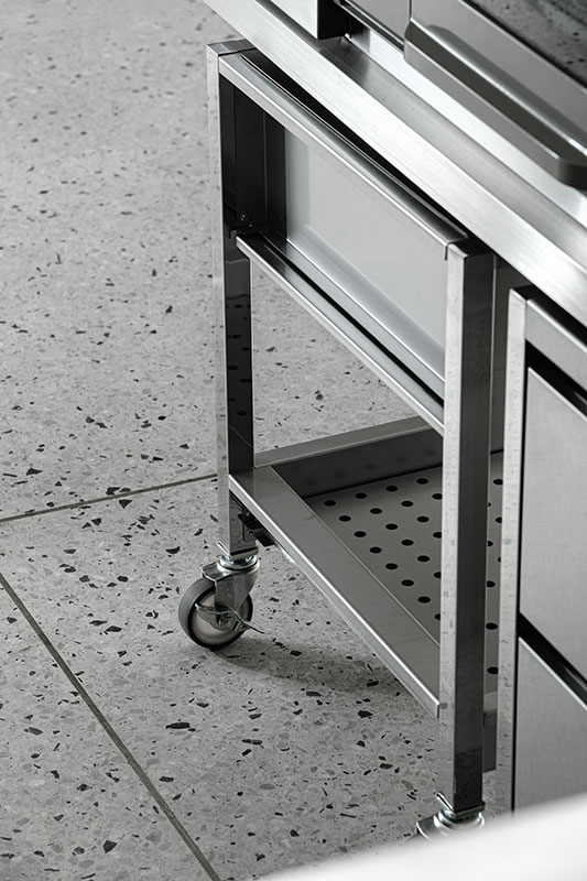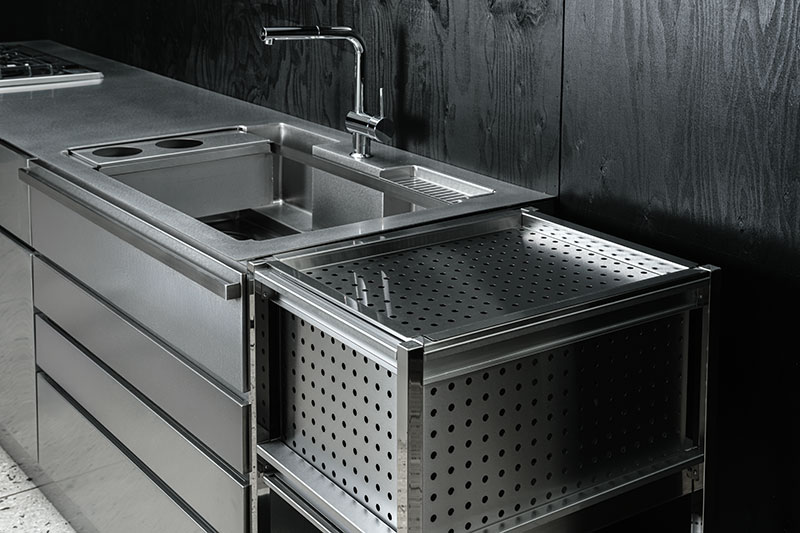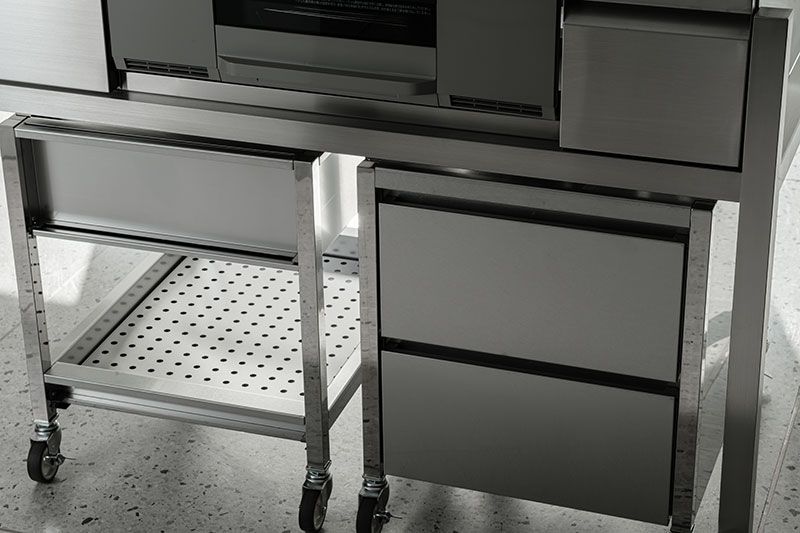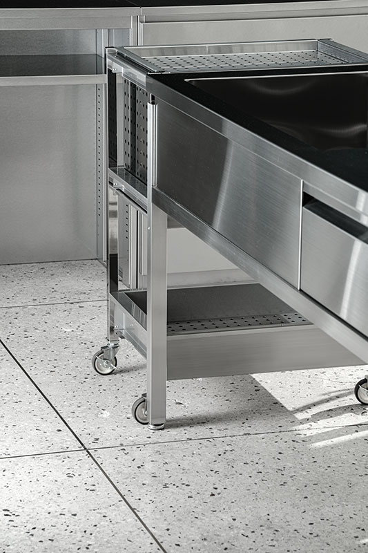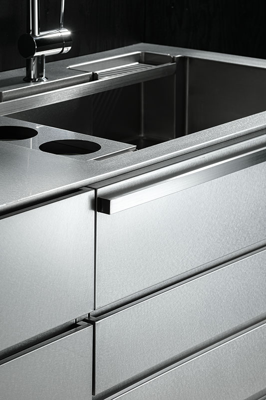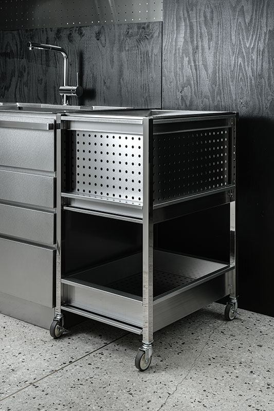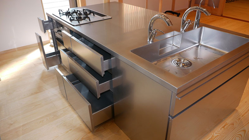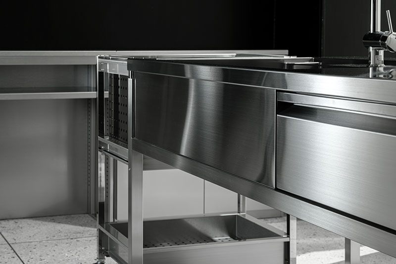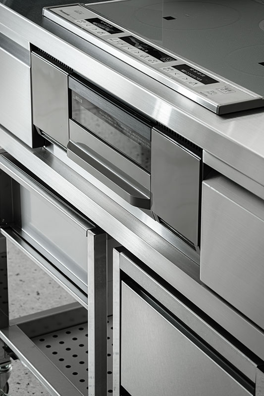 プロの料理人からの厳しい要望に応え、プロ用ステンレス厨房製品を数多く製作してきた経験豊かなシンバウトのステンレス加工職人たち。その優れた技術を惜しみなく生かし、ハンドメイドで製作されるオールステンレスキッチン、それがTETSUZIN(テツジン)です。