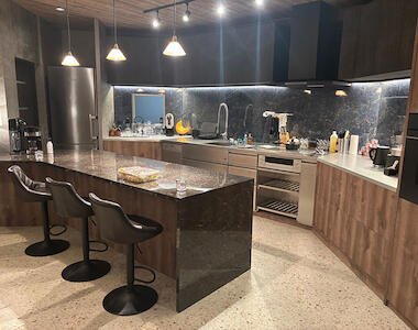 ご夫婦や友人たちとわいわい会話をしながら、一緒にお料理づくりが楽しめるようにワイドなワークトップを標準仕様としています。