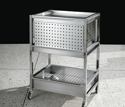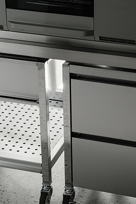またシンプルさを追求したデザインにすることによって、シリーズ中最も魅力的な価格設定を実現しています。オープンになっている下部は、フレキシブルボックスシリーズやステンレス棚、あるいはダストボックスを置いたりすることができる空間として使用できます。アイデア次第で自由に活用できるスペースとしてお考えください。