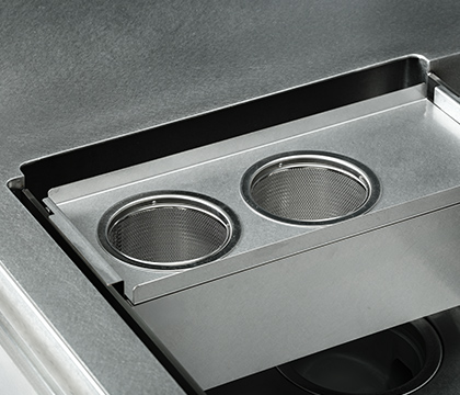 魚を下ろす際やカットするときにも滑りにくく、水分がシンクに流れやすくなっているワークトップにはステンレスディバイダーが設置されているので、鱗の飛び跳ねなどを受け止めることができます。