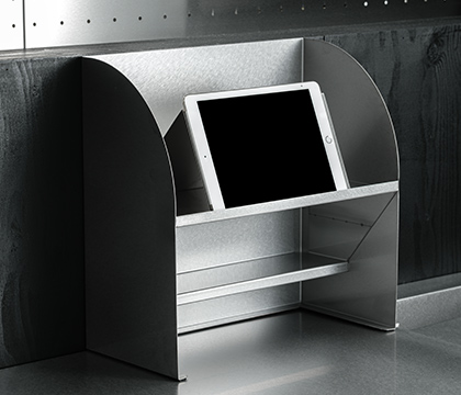 パソコンやデバイスでレシピを見ながら料理をされることも多いかと思います。そんな方のためにワークトップにデバイス用のシェルフを装備しました。(シェルフは向きを変えられます)