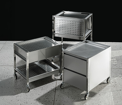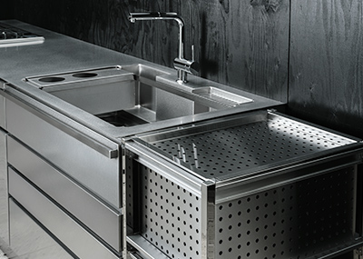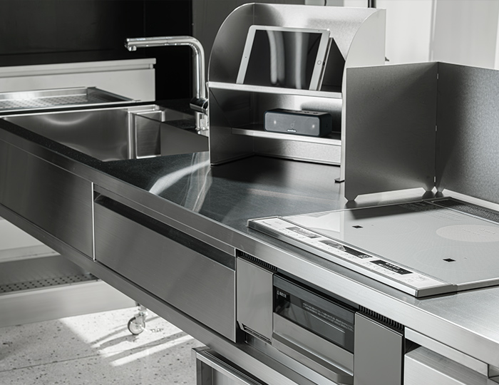 プロの料理人からの厳しい要望に応え、プロ用ステンレス厨房製品を数多く製作してきた経験豊かなシンバウトのステンレス加工職人たち。その優れた技術を惜しみなく生かし、ハンドメイドで製作されるオールステンレスキッチン、それがTETSUZIN(テツジン)です。