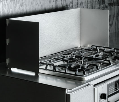 ガスコンロに置けば、揚げ物をする際などに飛散する油を受け止めます。また、ワークトップに置けば、魚の鱗取りなどのときに重宝する組み立て式のディバイダーです。
